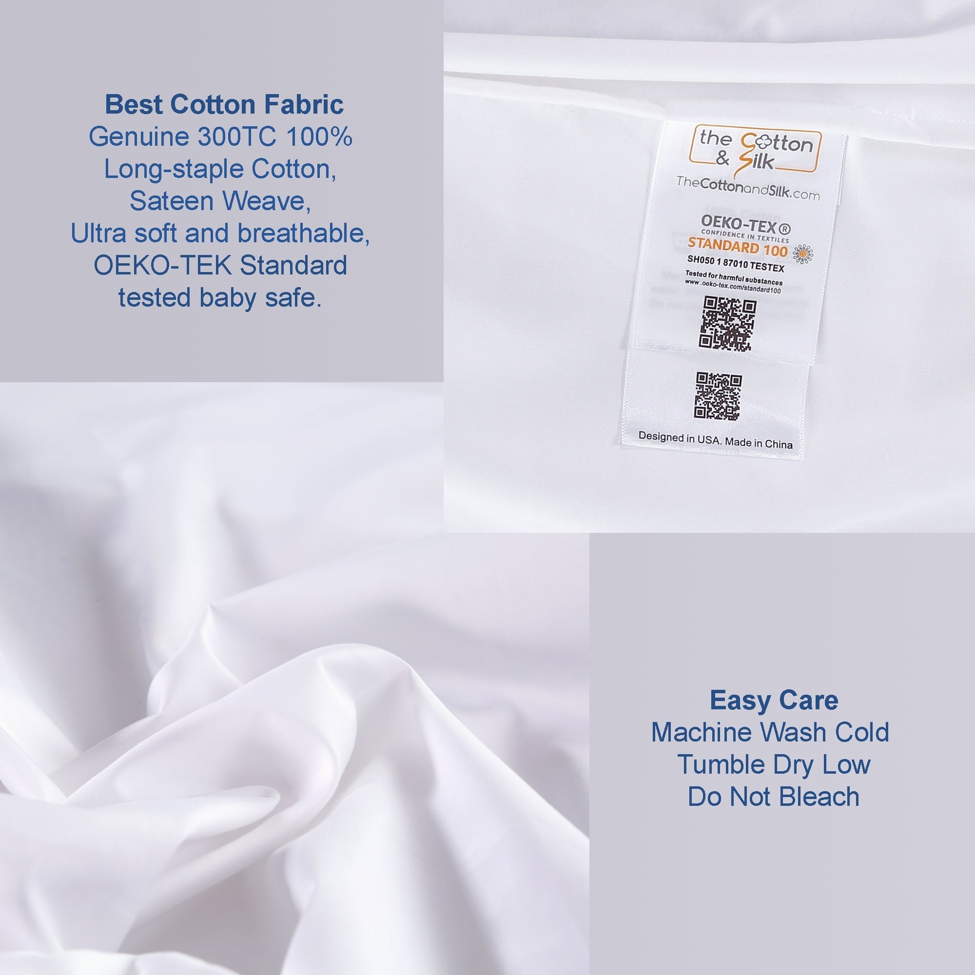 [MATERIAL] 100% Luxury Long-staple Cotton, Sateen Weave, Genuine 300TC; Ultra soft and comfortable; OEKO-TEK Standard tested baby safe fabric.