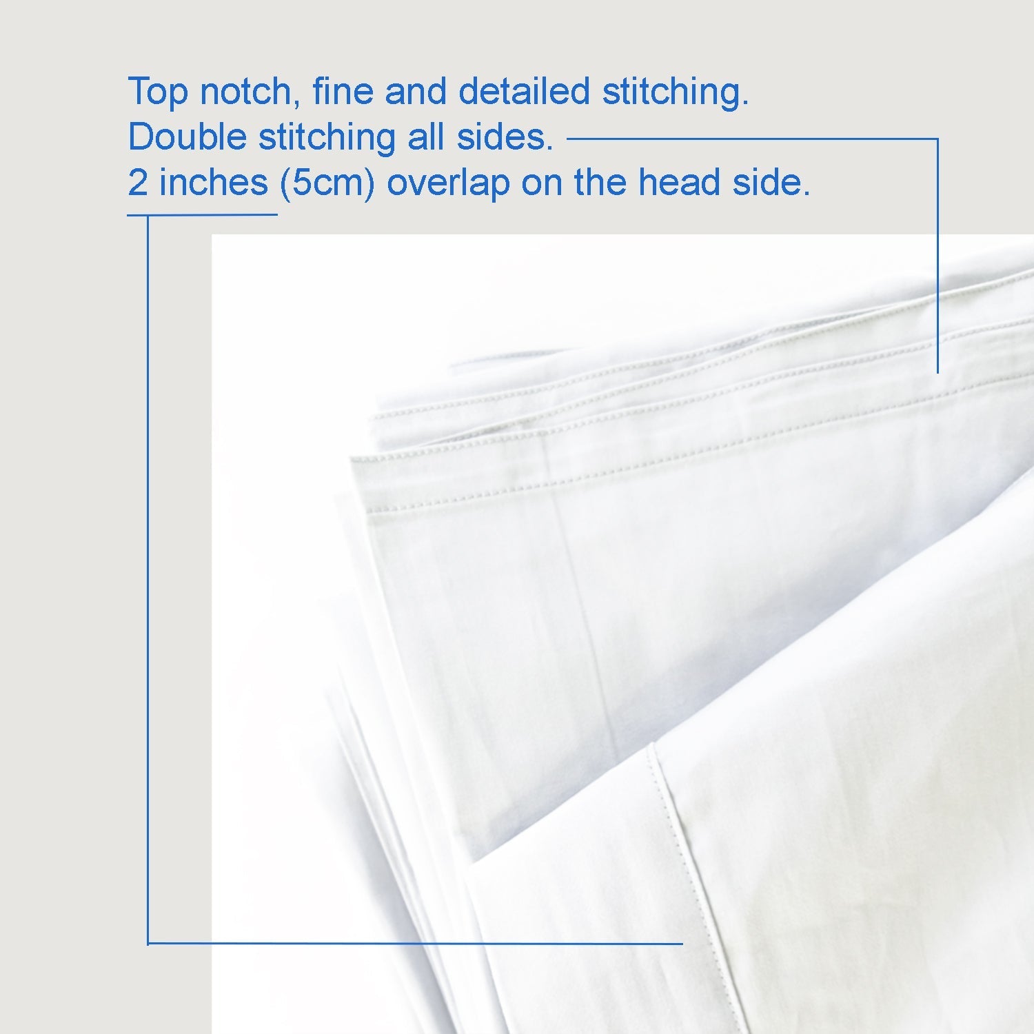 [DETAILS] Top notch, fine and detailed stitching. Double stitching all sides. 5cm (2 inches) overlap on the head side. It perfectly matches with our duvet cover sets as well as fitted sheets.